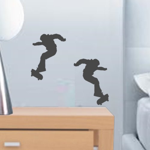 StikEez Grey Small Skateboarder Ollie 2-Pack Fun Wall Decal Feature