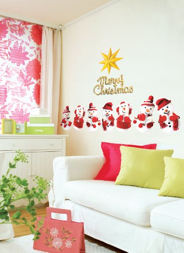 Christmas Holiday Time Reusable Wall Decoration Stickers - Merry Christmas Fun Snowmen Reviews